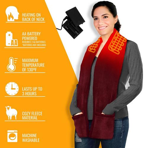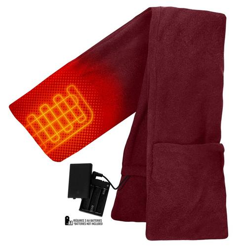 The ActionHeat AA battery-heated fleece scarf is great for any outdoor activity. With an easy on/off button, it's easy to add warmth and keep your neck and shoulders nice and toasty. With comfortable fleece pockets, your hands will stay warm as well.