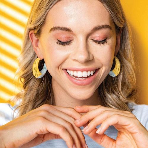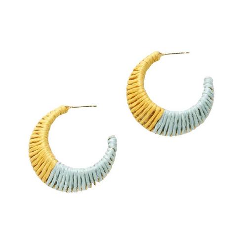True to its name, these lightweight, earthy raffia earrings feature bold colors + natural texture in the world's most iconic shape - the hoop! So whether you're sippin' mojitos on vacation, meeting the girls for a warm afternoon brunch, or adding a pop of personality to your office attire, you're sure to make a statement in these Cream + navy boho accessories.