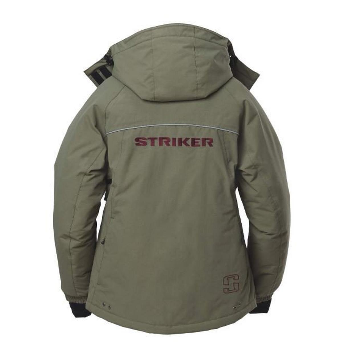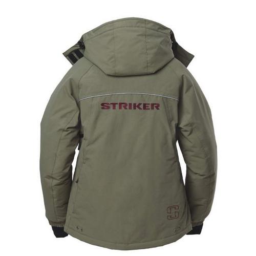 The Women's StrikerICE® Prism Jacket offers a perfect balance of warmth and comfort for ice anglers. The Women's Prism jacket features a built-in heat map lining and 150 grams of Thermadex® insulation to keep anglers warm even in brutal winter winds. A Line Cutterz® zipper pull provides a convenient place to quickly and safely cut braided or mono line, while pre-curved elbows and underarm vents ensure comfort. Plus, this women's StrikerICE jacket features low-profile side entry storage on the back of the jacket perfect for storing an extra pair of gloves. Stay warm and safe on the ice this season with the Women's StrikerICE® Prism Jacket.