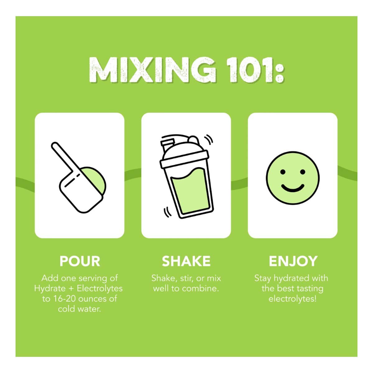 Satisfy your thirst and hydrate mindfully with Hydrate + Electrolytes. Light and fruity flavors bursting with benefits.