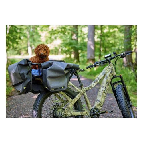 QuietKat's Pannier bag hangs on either side of the rear wheel of your QuietKat electric bike or trailer. These premium constructed bags are fully waterproof and made of marine-grade, waterproof materials which make them perfect for packing in extra gear for a hunt or a weekend camping trip. The pannier design allows for quick attachment and removal from the rear pannier rack and comes with a handle for easy carrying off the bike.