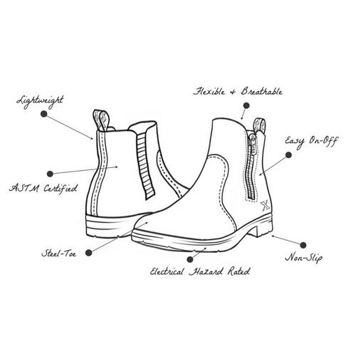The Omega EH Rated steel-toe boot was designed to meet the versatile needs of professional women. ASTM Certified, OSHA Compliant, Electrical Hazard, Non-Slip work boots never looked this good. Handcrafted in North America using genuine full-grain leather for an unforgettable fit.