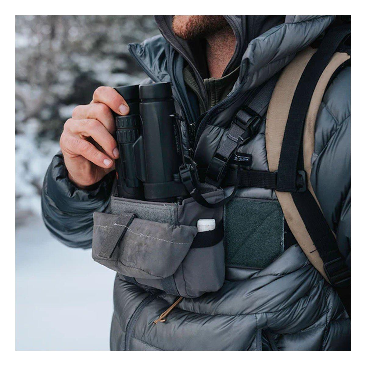 The Sentinel Bino Harness is a feature-rich optics system specialized for hunting, long-range shooting, and military applications. Built to be a modular, ultra-stable platform for binoculars and ballistics tools, the Sentinel system features a full kit of accessories that easily integrate with the harness for secure carry of rangefinders, wind meters, ammunition, and more. The Sentinel System also leverages Patented OptikFit™ technology for a custom optics fit and a 3-layer HydraShield™ laminate for complete waterproof protection.