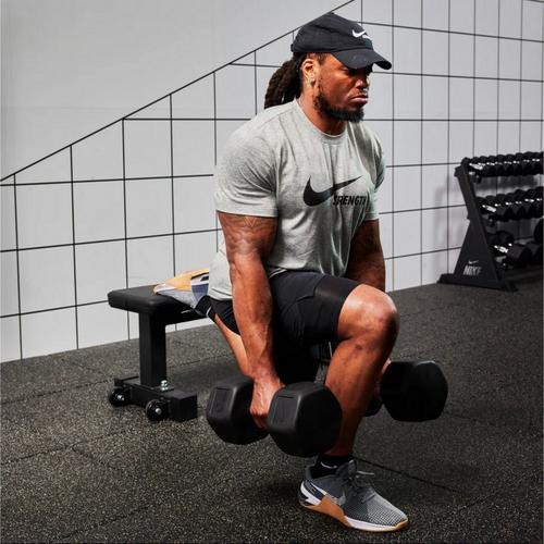 The Nike Dumbbell is your ultimate training companion. Made with robust rubber and sculpted edges this dumbbell offers both durability and comfort for all your training sessions. A medium knurled handle ensures a secure and comfortable grip, delivering the ideal balance of friction and control. The dumbbell is arguably the most versatile piece of gym equipment one can own — enabling thousands of movements to the athlete. Pick yours up and get moving! JUST DO IT.