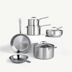 With a high-performing mix of our best sellers, the 10-Piece Set is curated by chefs to bring you a much-needed cookware reset. This Set features a range of nearly indestructible Stainless Clad tools that will help you craft chef-quality meals, fill the gaps in your kitchen, breathe new life into your routine recipes, and inspire new favorites.