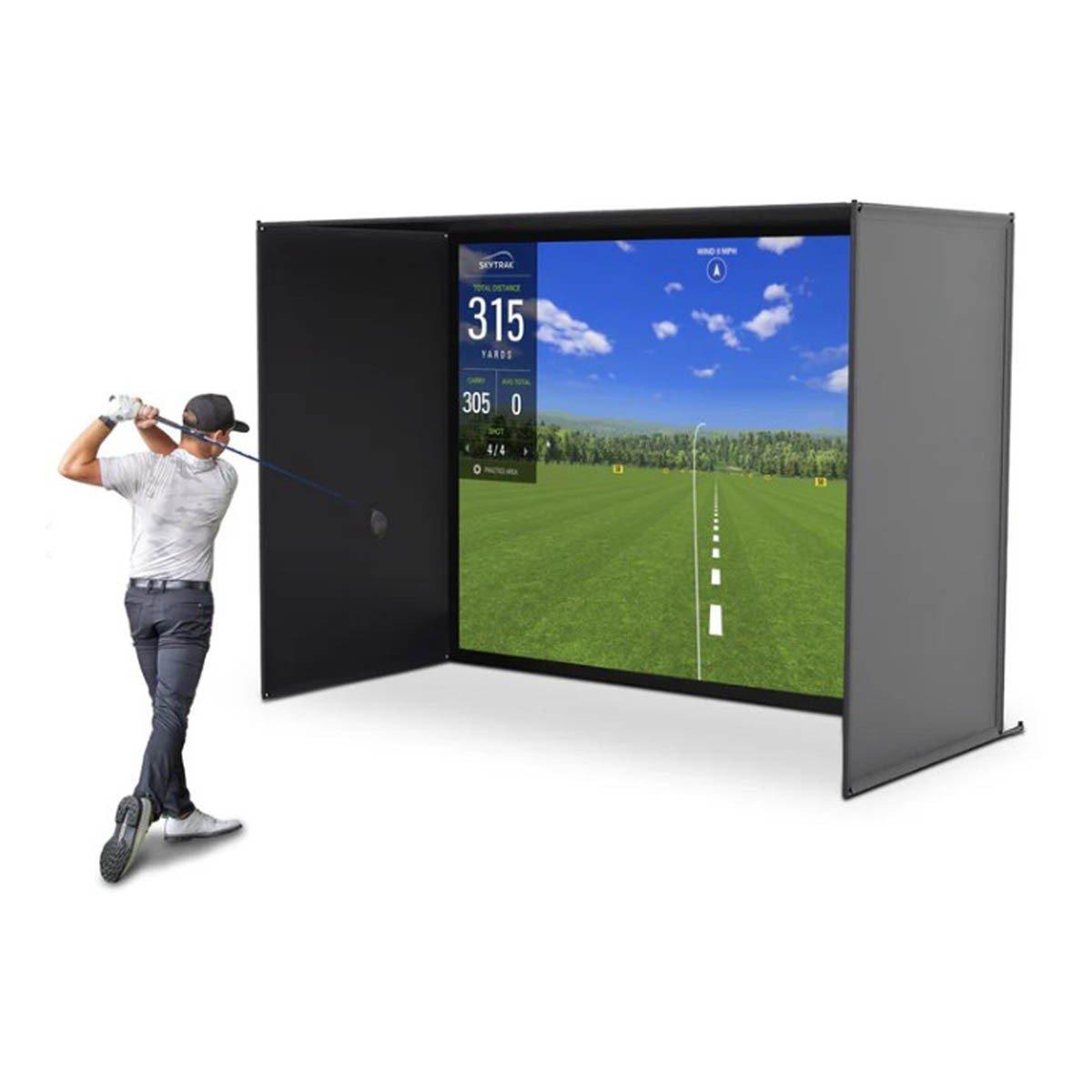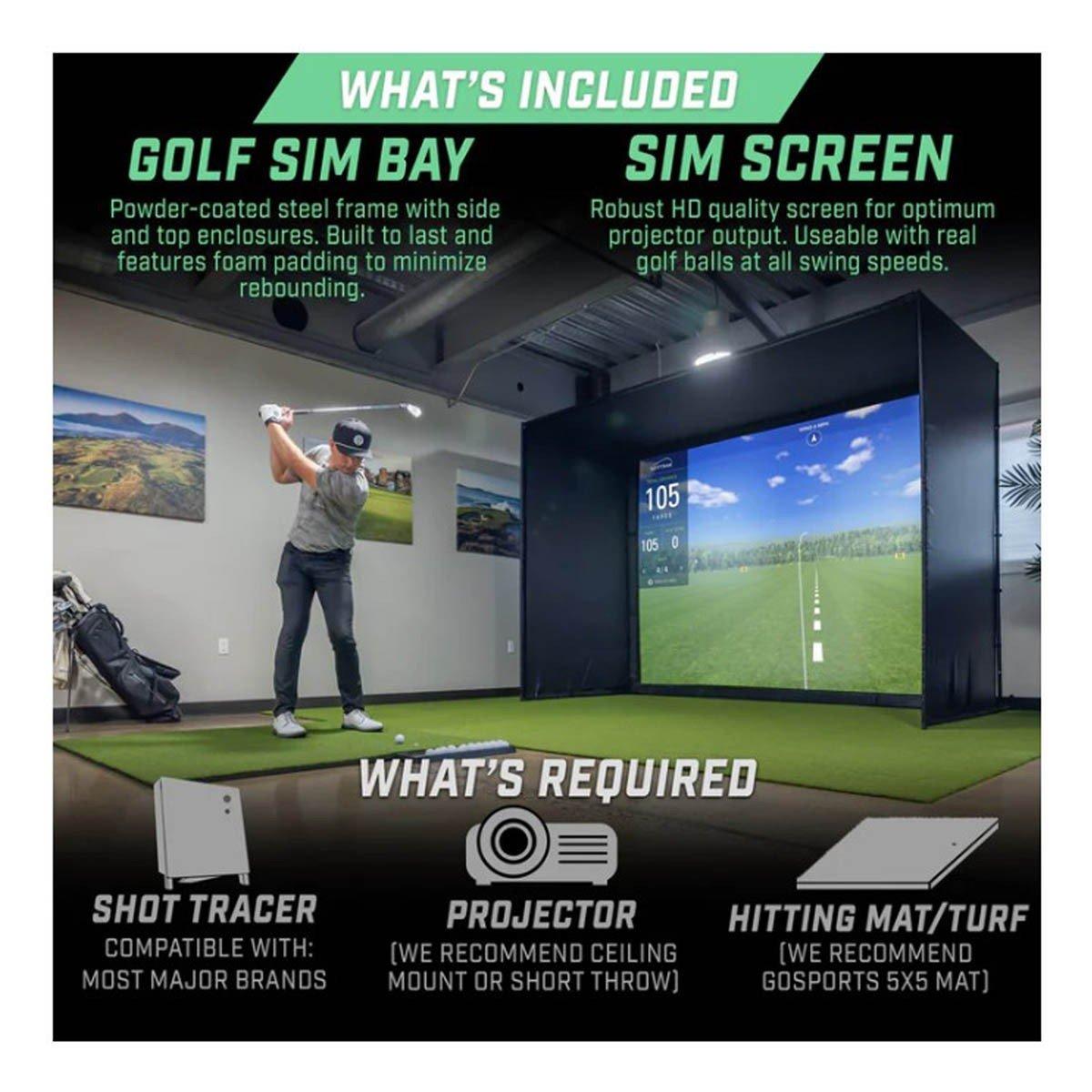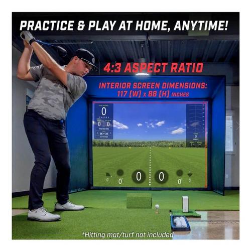GoSports 10 x 8 ft Golf Simulator Enclosure brings the course to your home! The ideal 4:3 aspect ratio screen with side and top coverings makes it an indispensable training aid for serious golfers who want the best. The enclosure features commercial grade quality at a significantly lower cost, making it an affordable choice for setting up a home driving range.