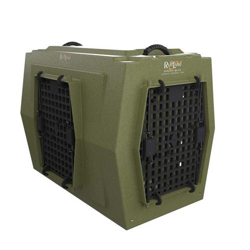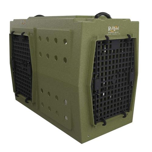 The Ruff Land Double-Door Dog Kennel is designed for durability and convenience when kenneling dogs at home or traveling to the field or vet. Made in the USA, the Ruff Land Double-Door Dog Kennel is made with quality and durability in mind for long-lasting use. Depending on the size of the kennel, the number of vent holes does vary, yet they are standard 1 3/8 in. diameter, and all kennels feature two finger holes in the back. The composite doors on this Ruff Land Dog Kennel G2 are designed with a tighter grid pattern to prevent any biting or chewing, while the flexible walls absorb shock so your pup stays comfortable when traveling. No matter the size of your pup, you'll find a high-quality Ruff Land Double-Door Dog Kennel to keep them feeling safe and comfortable.