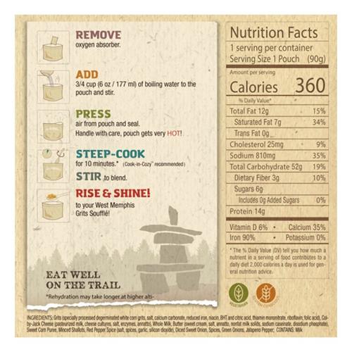 This stick-to-your-bones breakfast is a favorite of the Packit crew! Stone-ground hominy corn grits, green chiles, shallots and cheddar jack cheese are blended into a creamy, hearty breakfast with just a hint of spice!