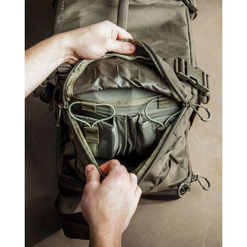 The main compartment features configurable, padded dividers to keep medical items, tools, camera gear, and range equipment safe and organized. The basement compartment on the bottom is perfect for handguns, tools, or even a compact carbine.