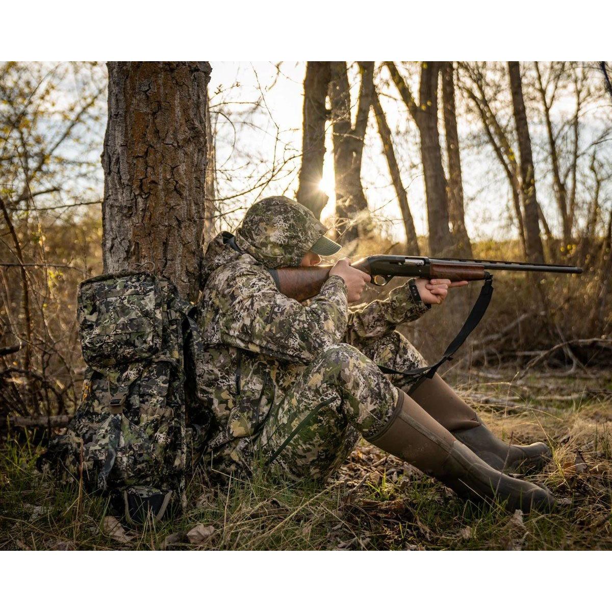 The Gunrunner™ is a minimalist, lightweight rifle pack with our patented Backscabbard™. This pack is designed for hands-free hunting and quick access to your rifle, and has just the right amount of stowage for a day’s outing. The top compartment is a good size for rangefinders, calls, etc., and the main compartment is sized for a day’s worth of food and clothing. The Gunrunner is ideal for upland bird, treestand, or a lightweight Western day hunt.