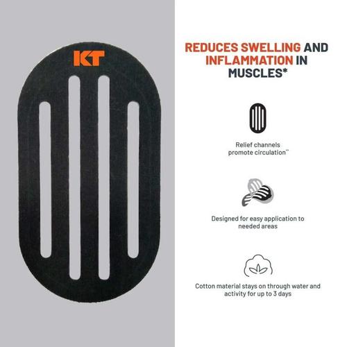 KT TAPE’s Recovery Patches utilize edema taping to lift the skin and allow lymphatic fluids to flow. Recovery Patches are a comfortable way to reduce swelling and inflammation. Simply apply the Recovery Patch over the area and it begins working to increase lymphatic drainage. Use Recovery Patches to relieve swelling due to injuries or reduce general swelling in feet and ankles or other body parts prone to inflammation. KT Recovery+ Recovery Patches support swelling reduction and lymph drainage. They work by gently lifting the skin and allowing fluid to drain away from the area through the lymphatic system. For larger areas, apply multiple patches like a daisy chain or overlap a couple at a time for more effective results.