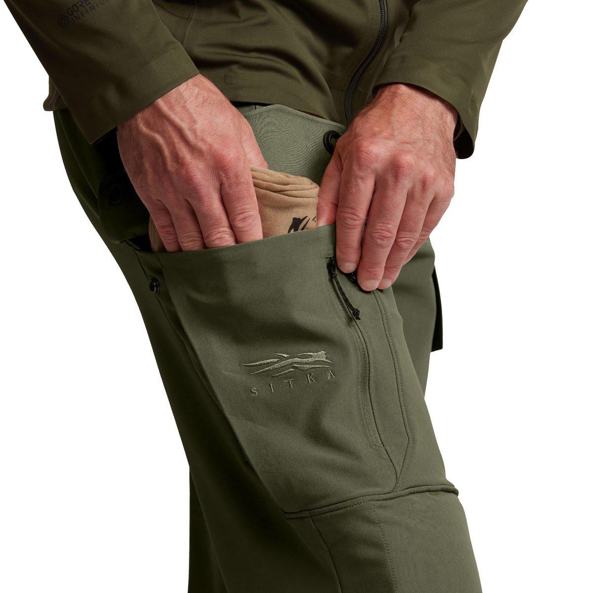 The Men's SITKA Mountain Pants are designed to be your go-to across several seasons and a range of different hunts. Made from polyester material, the SITKA Mountain Pants are durable while offering a four-way stretch for mobility in every direction, while the articulated fit provides hunters with a maximum range of motion without the bulk. To keep you drier for longer, the SITKA Mountain Pants feature a Durable Water Repellent (DWR) finish that resists light precipitation. You'll stay even more protected thanks to the removable knee pads.