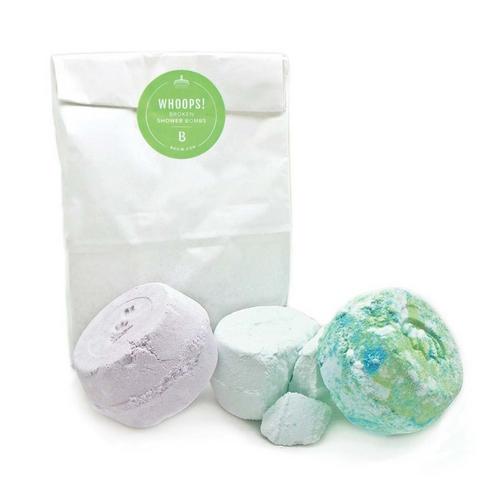 Enjoy a perfectly picked bag of imperfect Shower Bombs! Many shower bombs get chipped, cracked, or broken before we even sell them, a perfect shower bomb now turned WHOOPS! These whoops shower bombs may be damaged on the outside but are 100% perfection when used in the shower. Each Whoops Broken Shower Bomb Bag comes with 3 different whoops shower bombs that are chosen at random. A great way to try new shower bombs at a sale price and help reduce waste!