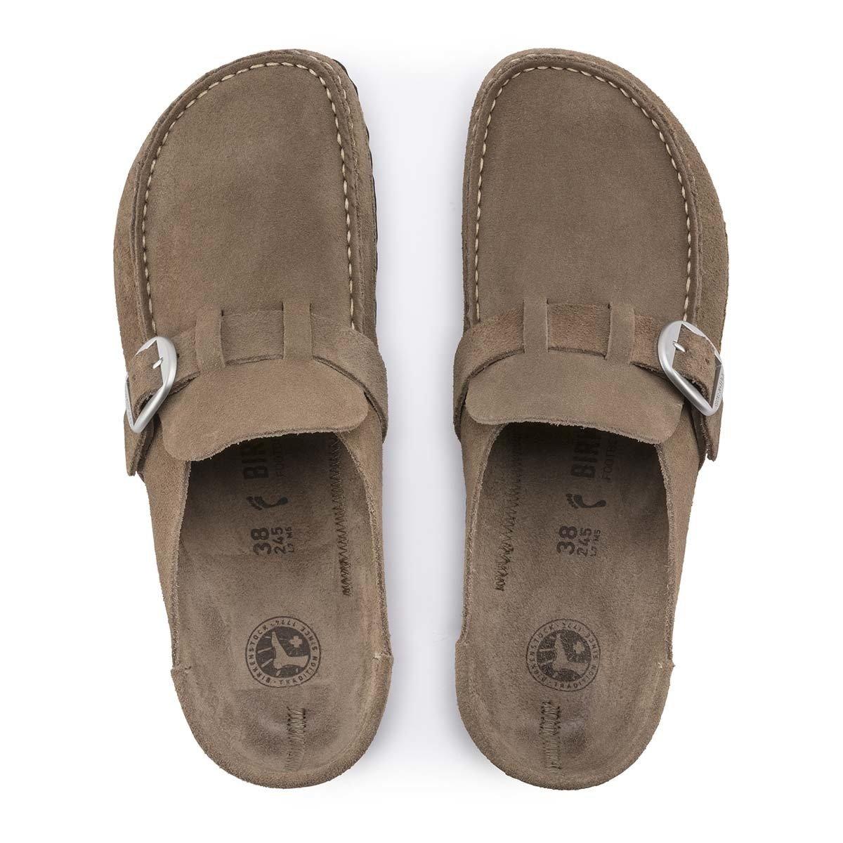 For more casual days, the Buckley BIRKENSTOCK Shoes are a great option. Highlighted by its semi-open moccasin-style design, you can easily slide them on and off quickly. For comfort, the Buckley BIRKENSTOCKS has an anatomically shaped cork-latex footbed so whether you are wearing them all day or just around the house you will be comfortable. Plus, the strap that runs across the forefoot allows you to make adjustments to fit your preference.