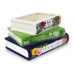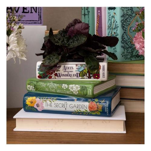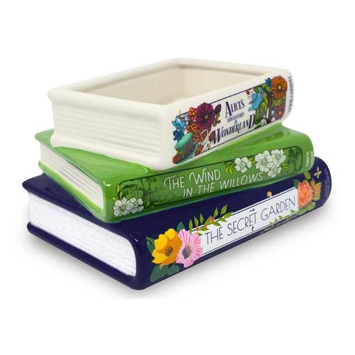 Any way you stack it this bookish planter is a must-have! Take your love for the classics one step further with our ceramic decorative books. Featuring artwork influenced by beloved titles and a multifunctional design, this unique planter is sure to dress up any room with bookish charm.