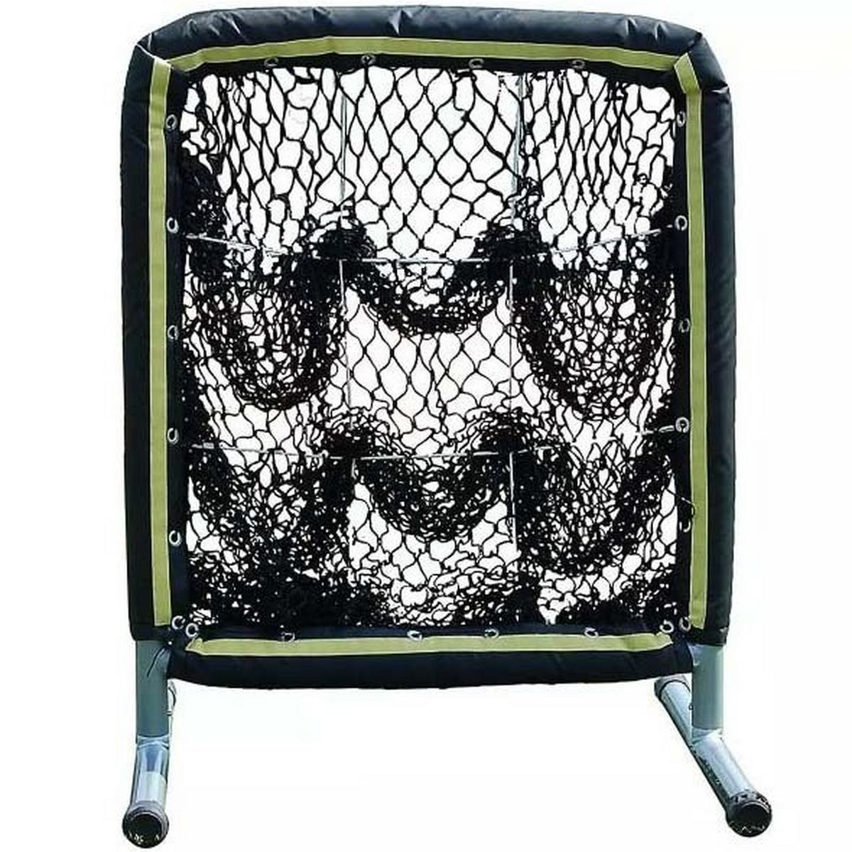 Heavy-Duty Pitching Target with nine knotless nylon pockets. Excellent for backyard practice painting the corners or ripping it down the middle - or setting up on the field for team practice. Vinyl padding with yellow target zone sewn in the border. Durable 2 Steel Frame with push-button assembly.
