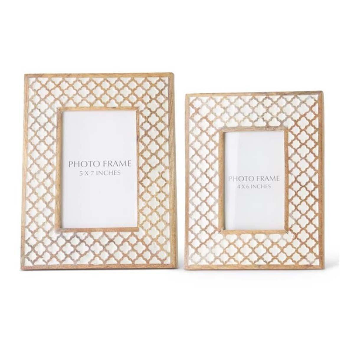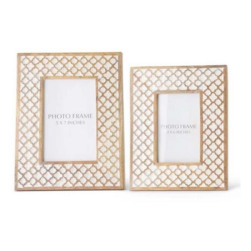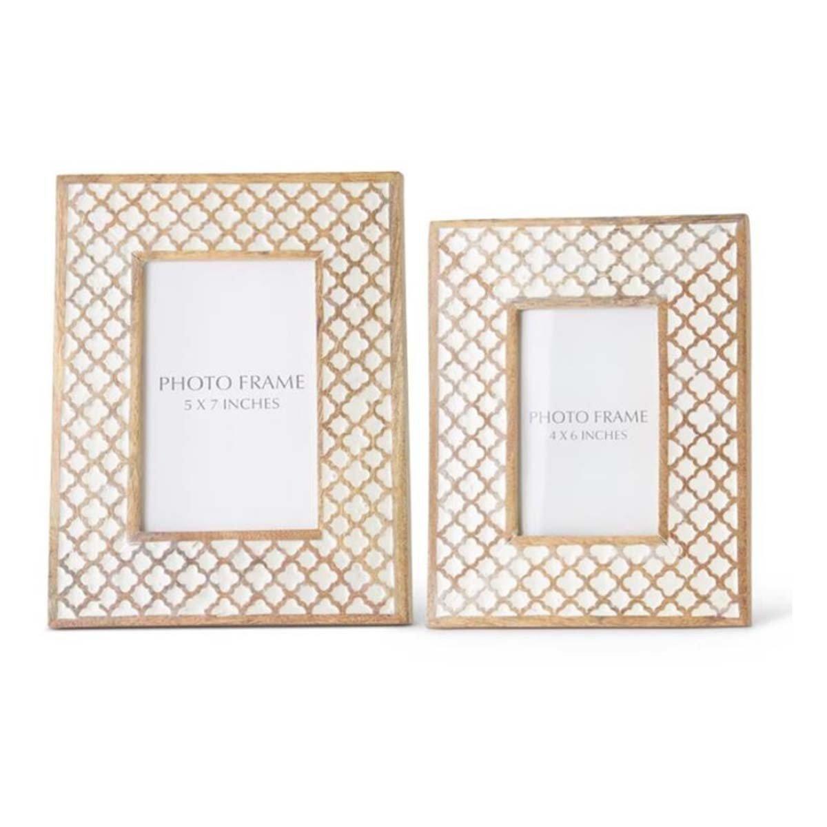 K&K Interiors Light Mango Wood White Moroccan Photo Frame