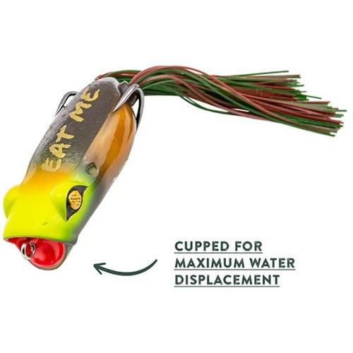 The Googan Squad Poppin' Filthy Frog is designed to splash, spray and spit your way into a bite. A cupped mouth helps you ''walk the dog'', keeping the bait in the zone longer. The 100% weedless body also allows you to fish it in the thickest slop, while the protective tubing around the hook keeps water out. And, an internal weight improves casting distance while assuring upright landing every cast.