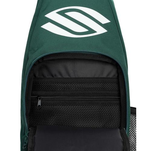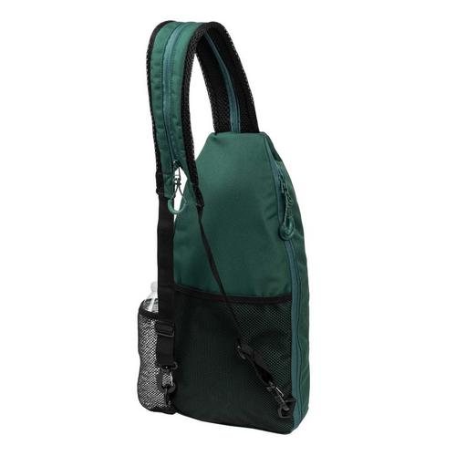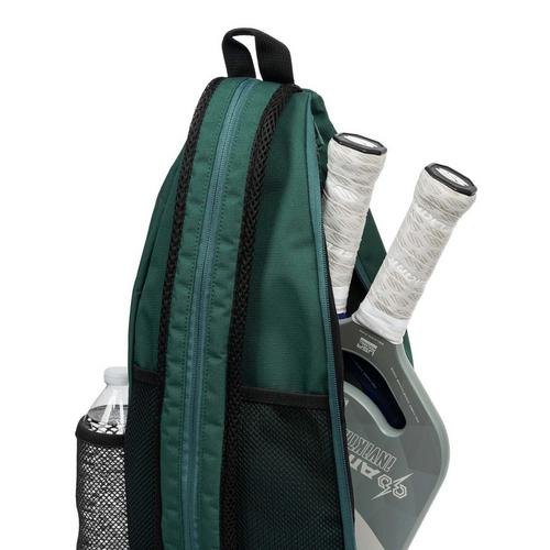 Compact yet versatile, the Selkirk Sport Pickleball Sling Bag is designed for players who need functionality in a streamlined form. Its padded paddle pocket comfortably fits one paddle and a ball, while a roomy water bottle pocket holds up to a 24 oz bottle. The back mesh pocket provides quick access to accessories or your phone, and the main compartment, with a front zippered pocket, is perfect for snacks or sunglasses. Inside, you'll find a secure pocket for your wallet and keys.