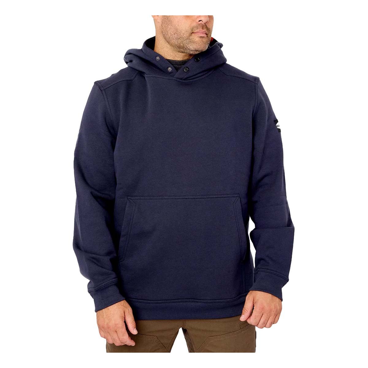 The Shevlin Hoodie is built from a durable midweight fabric that brings comfort and durability to the job site. The side hand pockets are big enough to warm your hands and stow some gear, and also feature a hidden tech pocket on the right side to securely stash your cell phone. The Shevlin has an industry-leading DWR coating that repels water, mud, and oil, plus a hard hat-compatible hood to better shield cold winds without sacrificing your safety.