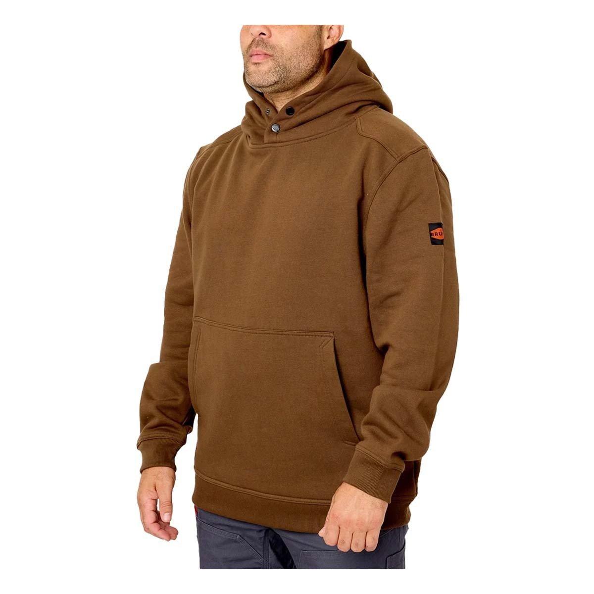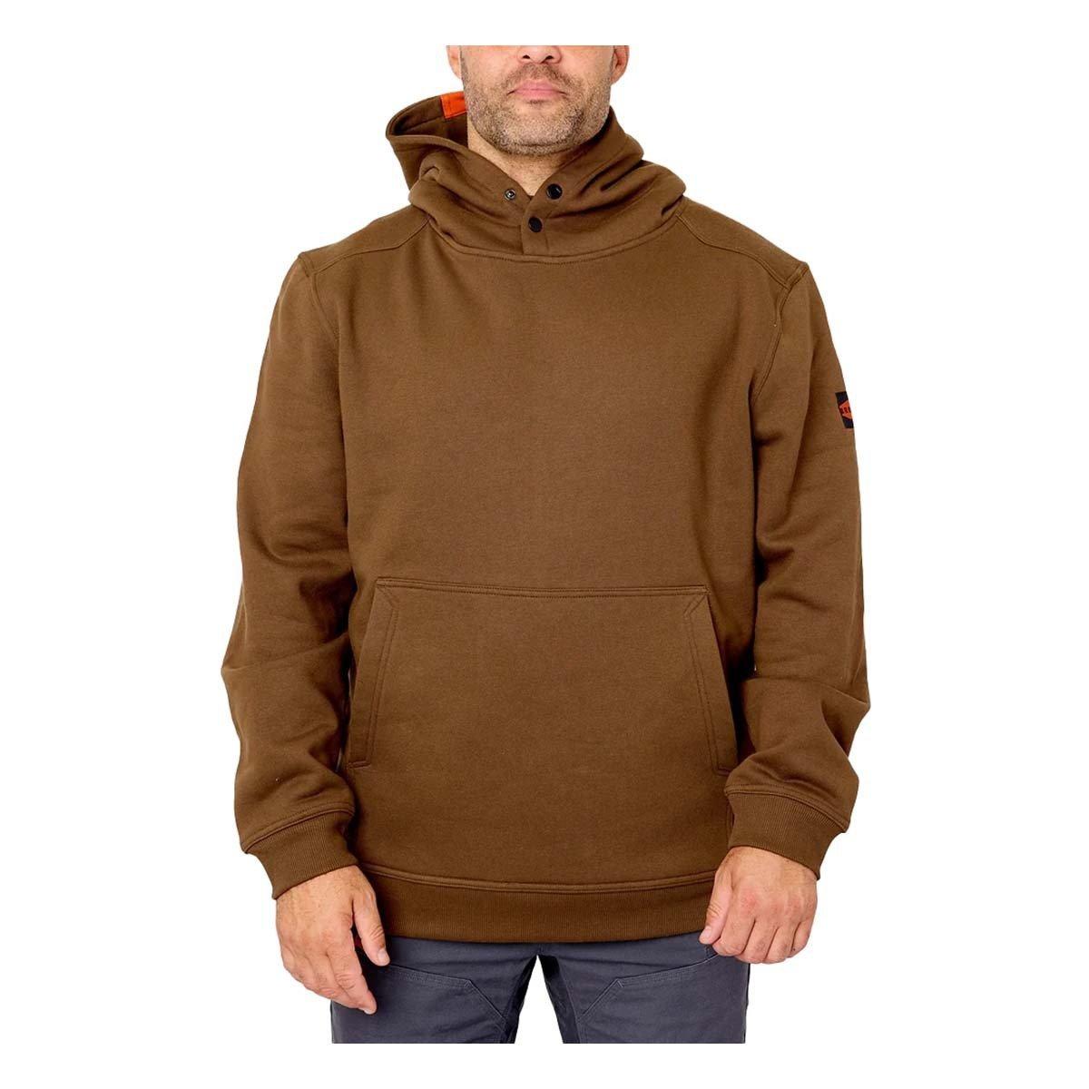 The Men's BRUNT Shevlin Hoodie is built from a durable, midweight fabric that brings comfort and performance to the jobsite year-round. This hoodie is a reliable layer, featuring an industry-leading Durable Water Repellent (DWR) coating that repels water, mud, and oil. The interior features a soft fleece knit for all-day comfort, while the hard hat-compatible hood and button snaps at the neck shield you from cold winds without sacrificing safety by eliminating drawstrings. Functional details include an oversized front pocket to stow gear and warm your hands, plus a hidden tech pocket for securely stashing your cell phone.