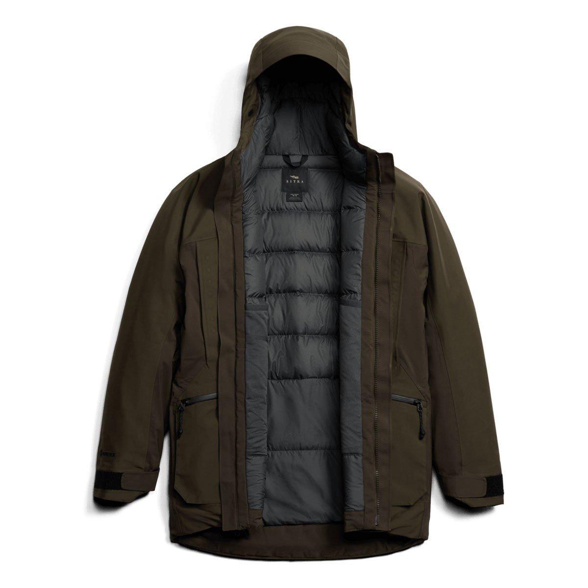 Our apex of warmth, weather protection and durability from marsh to mountain top. The 100% waterproof, breathable GORE-TEX fabric and body-mapped PrimaLoft® down and synthetic insulation blends subdue torrential rain, howling winds and frigid temperatures with ease. Protection provided by a 75-denier ripstop face fabric ensures lasting durability when hunkering down in jagged glassing spots or frozen crop stubble. Magnetic high hand pockets offer complete coverage and comfort between calling runs or sits behind a spotter. The Blizzard Pro Parka features a fully adjustable hood that keeps wind and water out, without obstruction your peripherals. Own the elements with this powerhouse of winter-weather protection.
