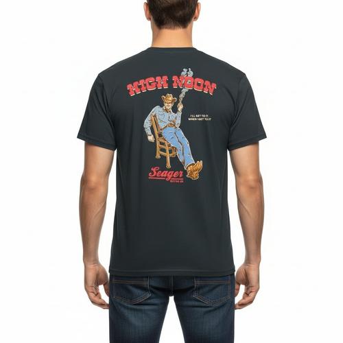 We'll see you at high noon. The Seager High Noon Tee fetaures a front and back graphic on a 100% cotton tee.