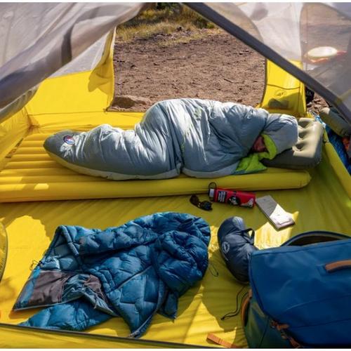 Specifically designed for the over 60% of people who sleep on their sides, the second generation of our patented Sidewinder side sleeper technology ensures warmth, comfort, and ease of use in any position you settle into. Constructed for comfort, with additional body mapped insulation to optimize warmth where you need it and provide cushioning and support at the hips and shoulders, easing pressure points and other ‘side effects’. The Sidewinder is a side sleeper’s dream bag with technical features that roll seamlessly from one adventure to the next, and from one side to the other at night.