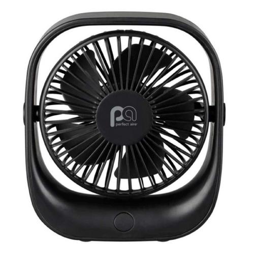 Stylish and compact, this 5" rechargeable USB fan from Perfect Aire is your best traveling companion. Power it up with the included USB cord, or take it on the go for up to 6 hours of use on the rechargeable battery. The compact size and quiet operation makes it perfect for dorms, offices, or bedrooms. Direct air where you need it with the adjustable tilting head, and choose your comfort level with three fan speeds. Now that's cool.