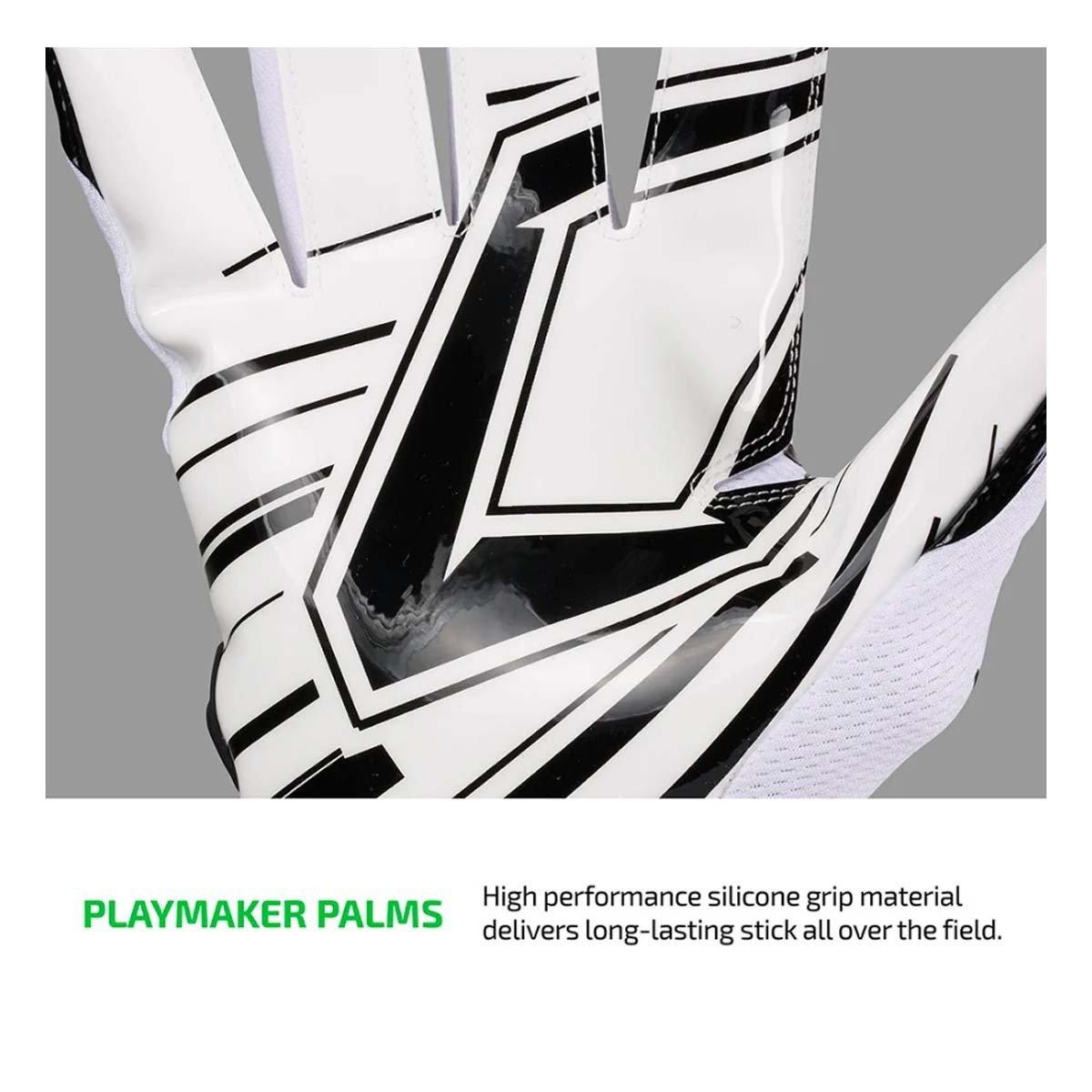 High performance lightweight receiver gloves built with the stickiest grip on the field. Streamlined design removes excess weight without sacrificing comfort and improves feel with all the ball security you need to make big plays.