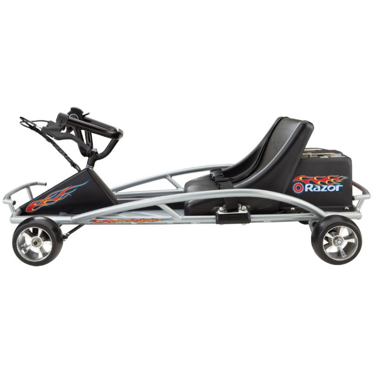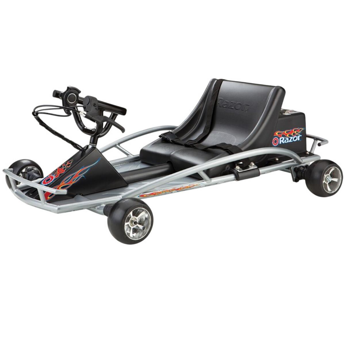 The Razor Ground Force Go Kart features classic kart styling with low profile cast aluminum wheels, sturdy steel construction, and a durable rear axle for increased maneuverability steering. A high torque motor let you speed up to 12 miles per hour for up to 45 minutes of continuous use. The electric powered Ground Force is a force to be reckoned with. Keep playtime fun and safe with this Razor Safety Helmet. Featuring 17 vents and ergonomic interior, this helmet provides safety while keeping the rider's head cool and comfortable. The sleek glossy black finish has a professional look when your little one pushes the limits on their bike, skateboard, scooter or whatever else they choose!