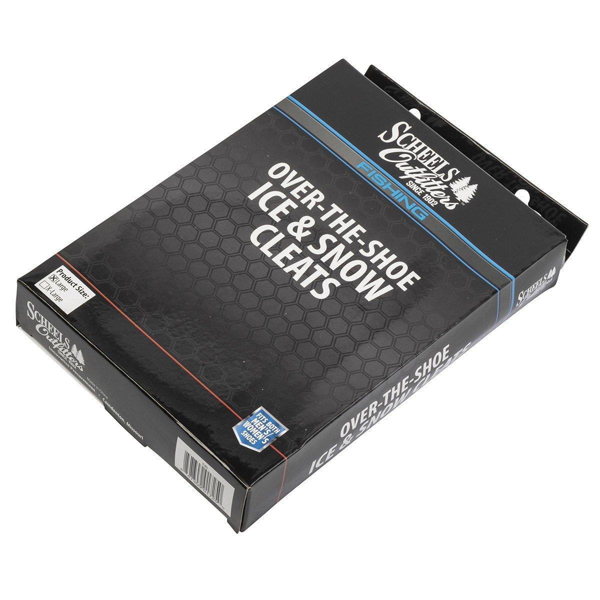 Walk securely anywhere this winter with the Scheels Outfitters Ice Cleats. These textured rubber clip on ice cleats slip over your shoes or boots to provide a secure fit and positive traction on packed snow and ice. These clip on ice cleats are super simple and can be easily put on when you have to walk out to the ice house and then take them off if you want.
