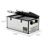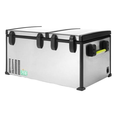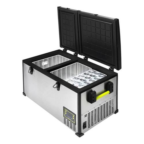 Our larger portable refrigerator comes with increased capacity and two compartments for more custom temperature control. It also has 78 L of space and can fit up to 130 twelve-ounce cans. Pair it with your Yeti power station to keep perishables cold for days.