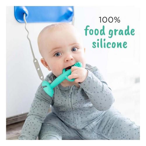 This dual-purpose spoon soothes sensitive gums AND helps your baby learn to self-feed! Made of 100% Food-Grade Silicone, it has a gripped handle for little hands and a textured spoon head that controls the amount of food it holds. It attaches to any Busy Baby tether to keep it secured to our Mats and Bibs and within their reach.