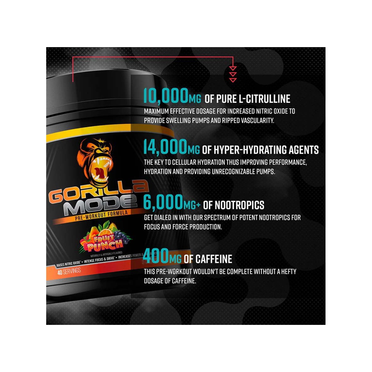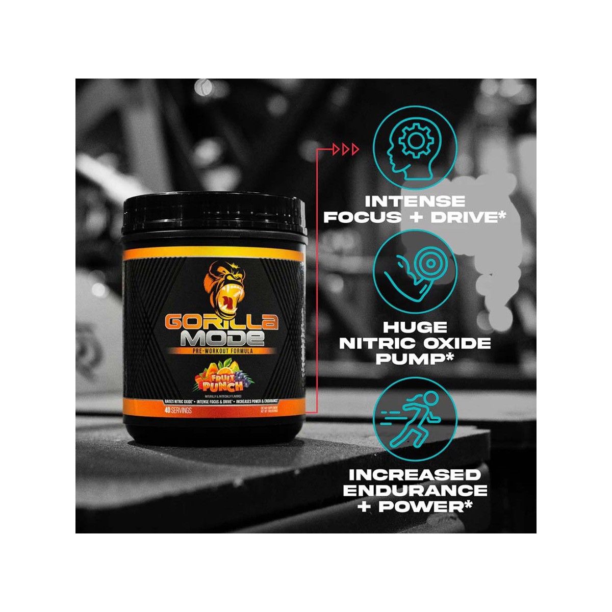 Gorilla Mode is our flagship comprehensive pre-workout featuring an array of complementary active ingredients at their maximum efficacious dosages.