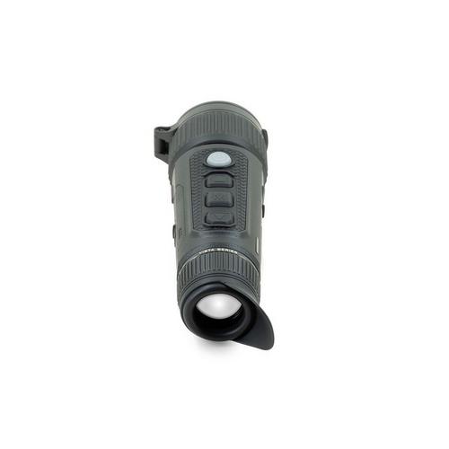 The VISTA handheld thermal monocular features an advanced f/0.9 germanium objective lens, offering exceptional clarity and detail. The original 50 mm model (ideal for long-distance observation) is now joined by a new 35 mm variant with a 3× native magnification, ideal for close and medium range hunting distances. Equipped with a high-resolution 640×512 thermal sensor and an impressive ≤15 mK NETD sensitivity rating, this ergonomic monocular delivers crystal-clear images with remarkable detail and contrast. The lens-integrated laser rangefinder enhances its functionality, boasting a maximum detection range of 1,200 yards with a remarkable sensitivity of ±1 yard. Its ergonomic design ensures comfortable handling, while the intuitive interface allows for seamless operation. VISTA models include electronic image stabilization for a smooth, sharp picture on the 2560×2560 round AMOLED display. Whether you're scanning for coyotes or conducting night-time surveillance, this is your go-to tool for unparalleled thermal imaging performance.