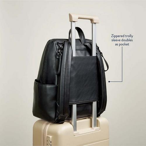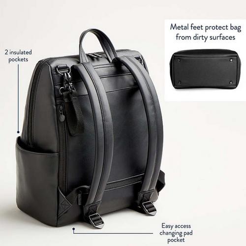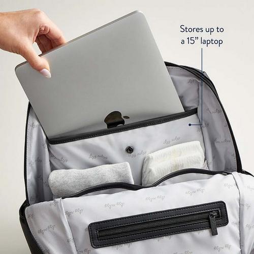 Introducing the Eras Diaper Bag Backpack! This is your ultimate companion for all stages of parenthood & beyond. Crafted with gorgeous vegan leather and a sleek design, this Midi-sized bag lets you keep owning your unique personal style - we just add in the functionality every parent needs. With 15 total pockets, you’ll feel totally organized and confident through every era of parenthood. Newborn era? There’s plenty of room to organize everything for your inaugural Hot Mom Walk. Toddler era? A hands-free style lets you run around with your little with ease. Heading to the office? Your laptop has its own, personal pocket. Traveling with the fam? The trolley sleeve in the back makes this your airport bestie.