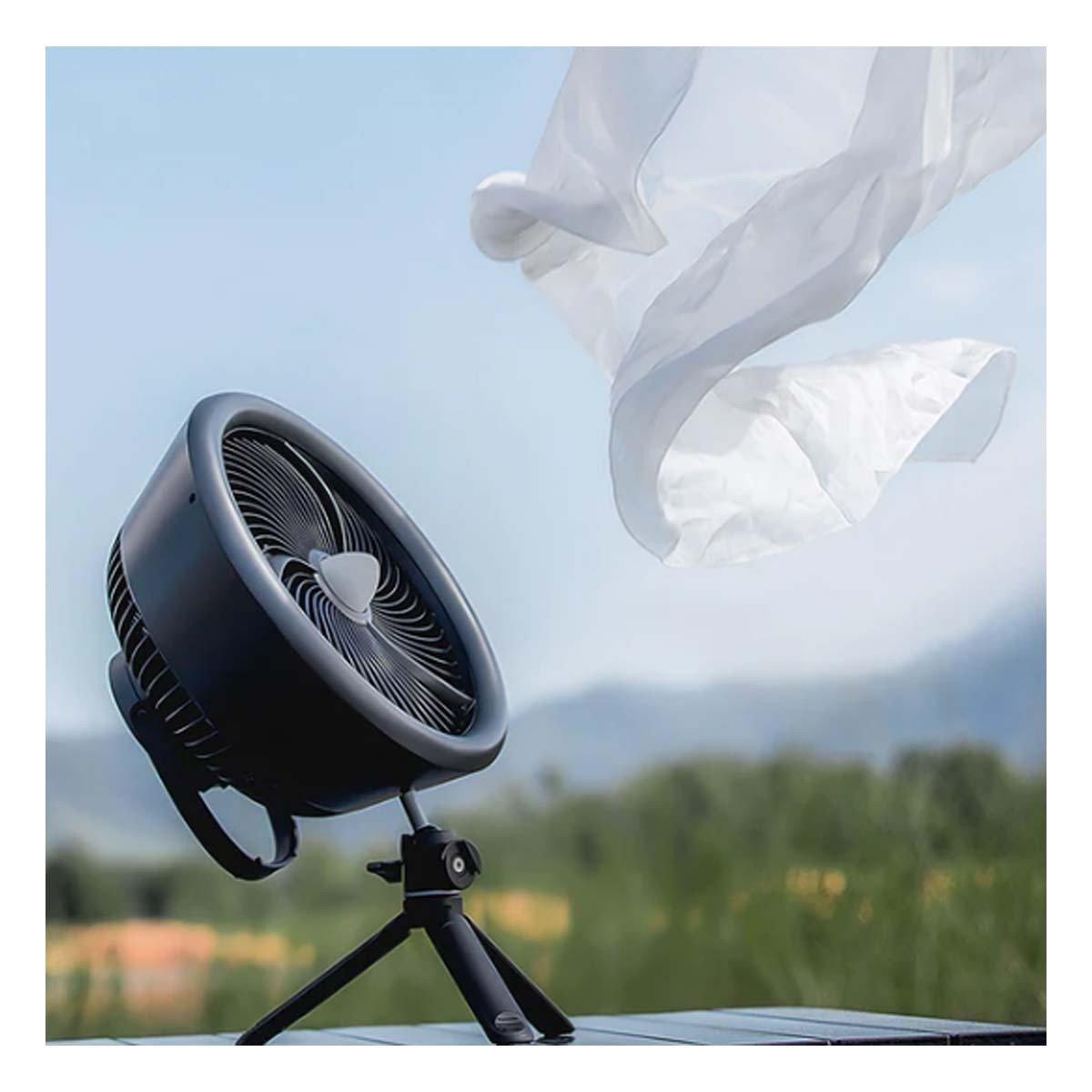 Size of only 24 x 25 x 35cm. MAX COOLER is an outdoor fan with an aircraft engine look, designed to keep your outdoor trip cool - wherever you go. With powerful fan speed, outdoor flashlight & mosquito repeller built-in, emergency power supply, and IPX4 water resistance, MAX COOLER is the perfect portable fan you need for outdoor adventures or travel.