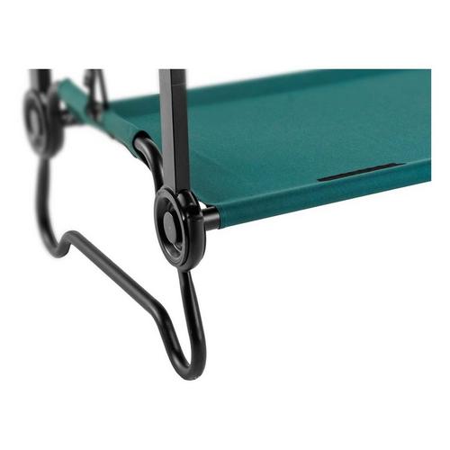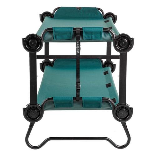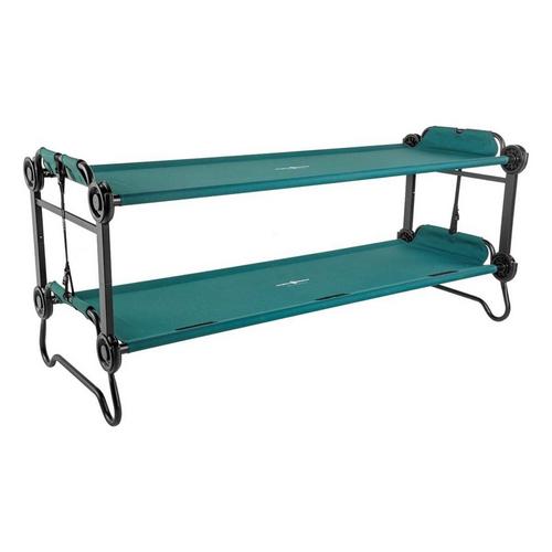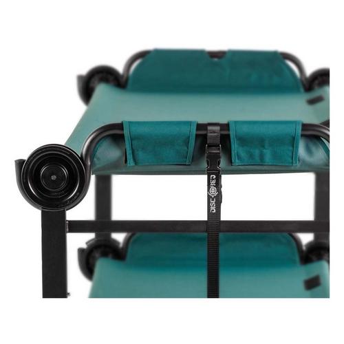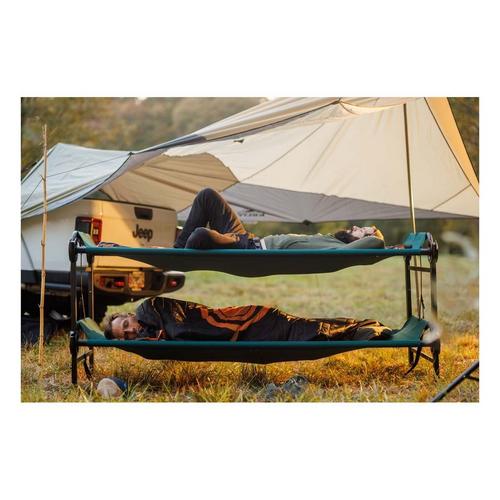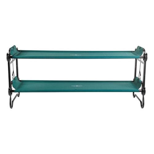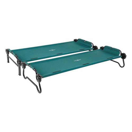 The Disc-O-Bed Large Bunk ensures a comfortable night's sleep, whether you're camping or hosting guests. Its patented disc assembly system makes setup a breeze, and the sturdy steel frame provides stability on any terrain. Say goodbye to uncomfortable middle bars for a restful night of sleep. The Disc-O-Bed Large system fits two people and maximizes floor space with an 11-inch ground clearance and 21-inch distance between cots. Its robust, rust-resistant, powder-coated steel frame can support up to 500 lbs per single cot. The high grade polyester sleeping deck is removable for easy cleaning, and the package includes two cots, two carry bags, stack adapters, and locking straps. Plus, it comes with a 5-Year Limited Manufacturer's Warranty. Upgrade your camping comfort today!