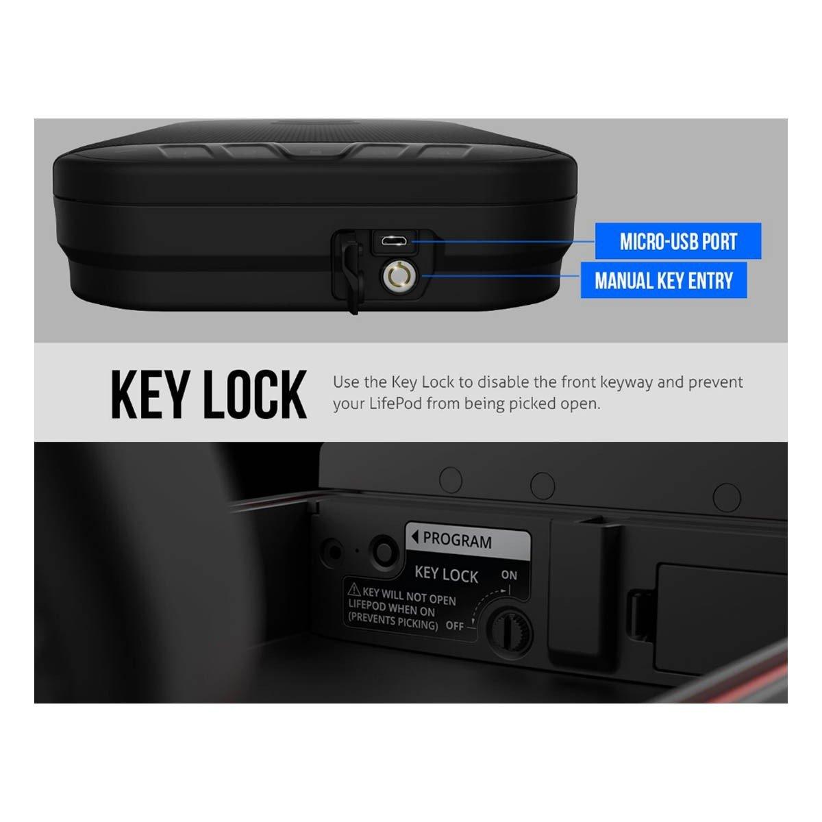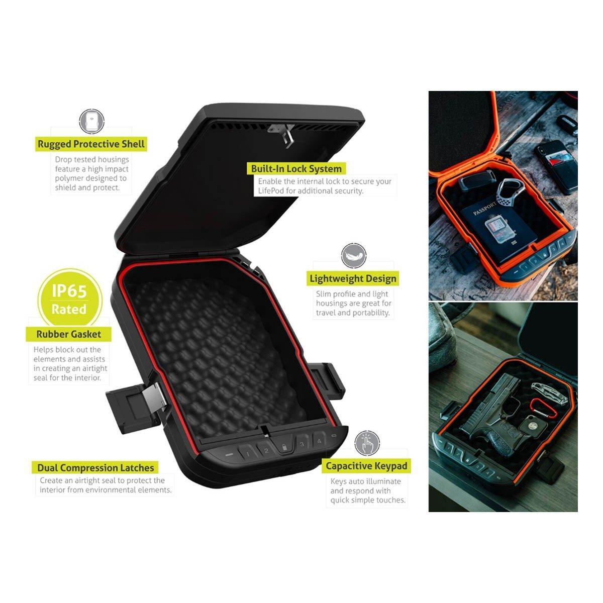 The Vaultek LifePod Personal Safe is a lightweight, compact safe for handguns and other small items. This Vaultek safe can be used with or without a battery and provides convenient weather-resistant storage for a phone, handgun, or other small personal items. The four-digit keypad is programmable with a four- to eight-digit code and included backup keys allow for battery-free opening. The high-density foam interior protects the stored items against impact while dual-compression latches create an airtight seal to block out dust, precipitation, and moisture. With an included tether cable that allows you to easily wear the safe and carry it with you, the Vaultek LifePod Personal Safe offers portable protection for a variety of compact items.