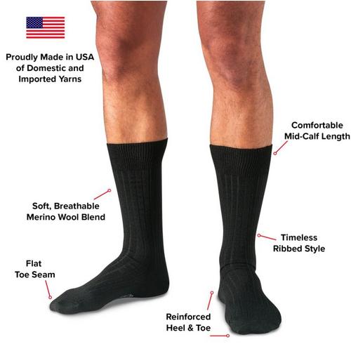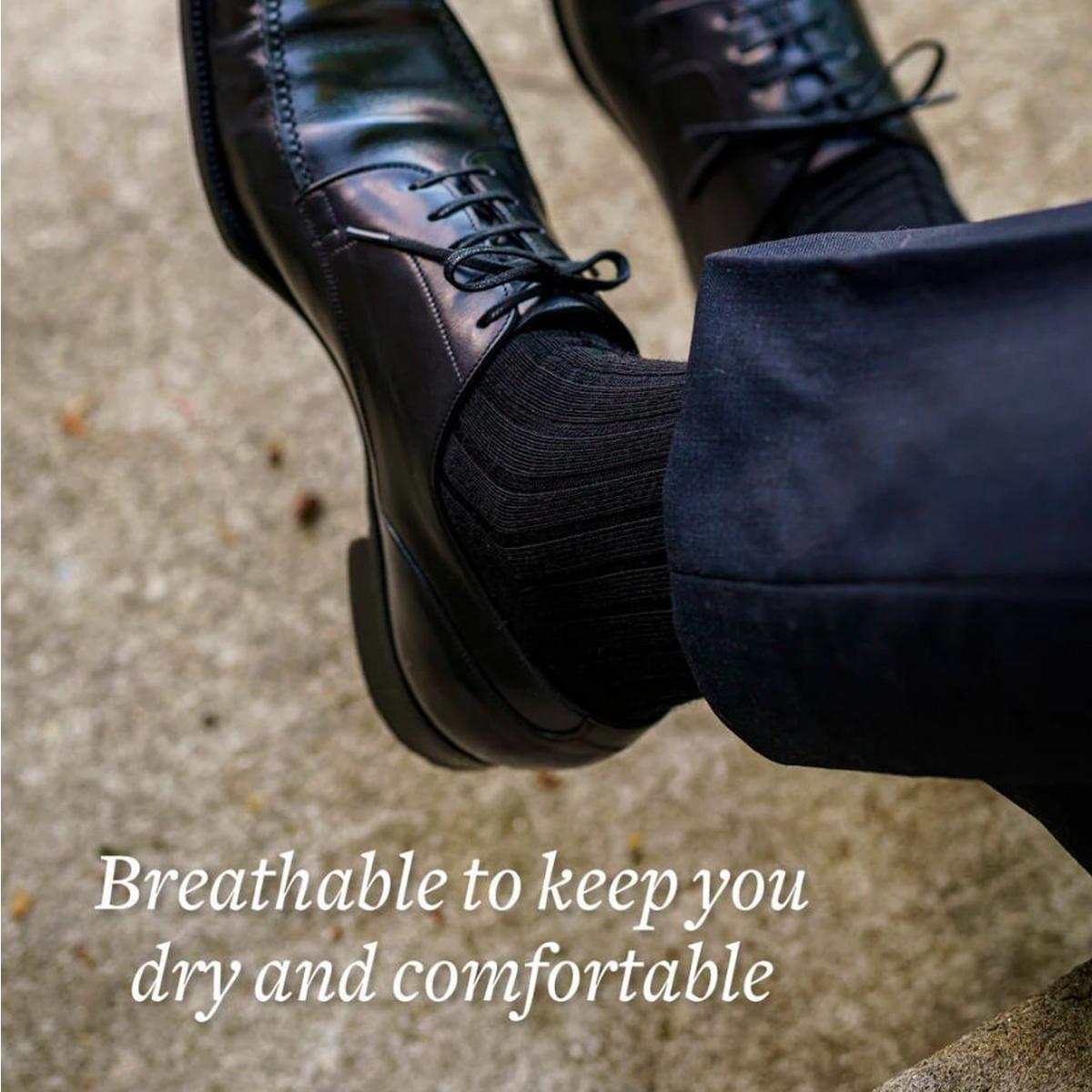There’s not a wardrobe workhorse quite like a pair of our merino wool dress socks. Our socks make use of soft, breathable merino wool, and the mid-calf length will prove useful in a variety of style situations. In fact, the wonders of merino wool – an antimicrobial, moisture-wicking material - make these useful to wear alongside everything from leather sneakers and blue jeans to a charcoal suit.
