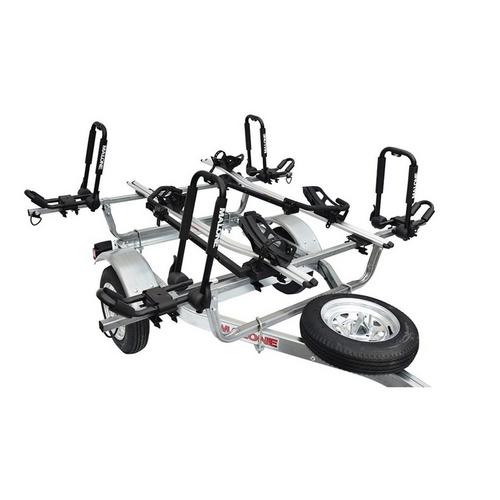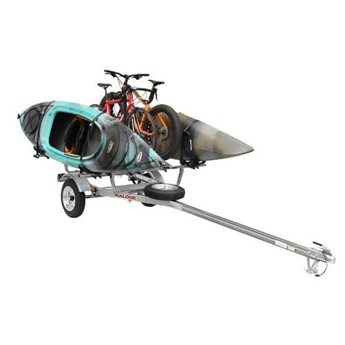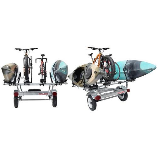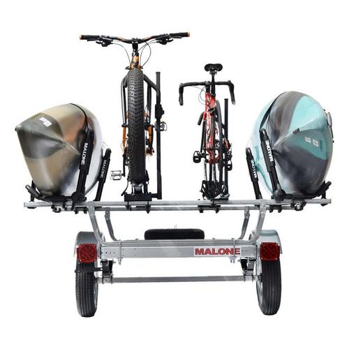 The MicroSport™ 2 Kayak/2 Bike Trailer Package combines a USA built performance trailer with high quality Malone kayak and bike carriers for transporting two kayaks and two bikes. Easy to assemble and use, each trailer kit comes with detailed award-winning instructions, as well as pre-fitted electrical, mechanical, and hub assemblies. Eliminate the headache of loading boats, bikes and luggage onto your vehicle's roof. Get the added savings of using less gas by having your gear ride in your slipstream. Includes full size spare tire with lockable attachment. Five Year Limited Warranty on the trailer. Lifetime Limited Warranty on the kayak and bike carriers.