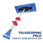 SNOW PROBLEM! The Snow Joe® Snow Broom model SJBLZD makes quick work out of the snow piled on the roof, hood, trunk or windshield of your car. Its patented dual-purpose design features a broom head on one end and a built-in ice scraper on the other, so you can quickly push heavy, wet snow off your car, then clear away the ice build-up on your windshield with just one tool. Made with a durable, reinforced, non-abrasive foam head, the Snow Broom safely and effectively sweeps snow off your car without scratching the glass surfaces. Plus, its telescoping pole extends from 33 to 52 inches to provide maximum reach with minimal strain. The Snow Broom is super easy to handle and stores neatly inside the trunk of your car with its built-in bracket holder. GET EQUIPPED® this winter with the Snow Joe® Snow Broom and clear out fast from tough winter messes.