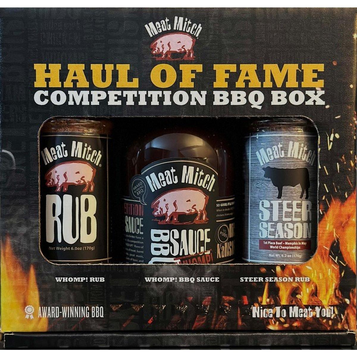 A celebration of our legendary WHOMP! barbecue sauce, competition WHOMP! Rub and Steer Season rub. These award-winning, gluten -free offerings from Meat Mitch are competition barbecue and backyard warrior fan favorites year after year!