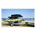 The MegaSport™ is designed to meet the needs of the serious kayak angler. Proudly made in the USA, this premium marine grade trailer is the largest and most accessorized trailer we offer. From top to bottom, this trailer is a beast. It can be customized with options to provide wet or dry gear management, overhead storage, lighting / power options and electronic recharging. Tows so perfectly straight that you will hardly know it's back there. Provides safe travel up to a maximum of 65 mph while transporting loads up to 1,000 lbs. Five Year Limited Warranty.