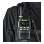 The license free Renegade X radio has 22 channels with 121 sub-channels. The removable lithium ion battery and power saver technology provides for 36+ hours of use. Transmitting at the U.S. legal limit of 2 watts, the radio has line-of-site range of 25+ miles and a backcountry range of 1-5 miles. The radio also has a VOX (voice activation).