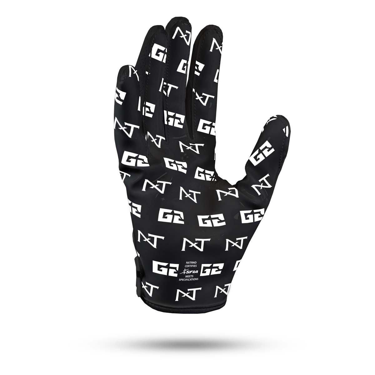 Introducing the NXTRND G2 Pro® football gloves. Built for elite performance, these gloves are trusted by athletes across tackle football, 7 on 7, and flag football. Featuring our signature NXTgrip palm with extended coverage and a wrapped pinky, the G2 pro expands your catching surface for maximum control. A secure thumb socket locks your hand in place, while breathable 4-way stretch fabric, silicone finger caps, and updated palm stitching deliver comfort, flexibility, and ball feel for high-speed football in any format.