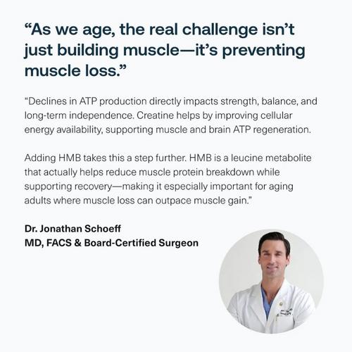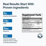 This formula harnesses the synergy of creatine monohydrate—the most studied form of creatine—and a naturally occurring metabolite known as beta-hydroxy-beta-methylbutyrate (HMB), the latter of which helps reduce muscle damage and muscle protein breakdown.