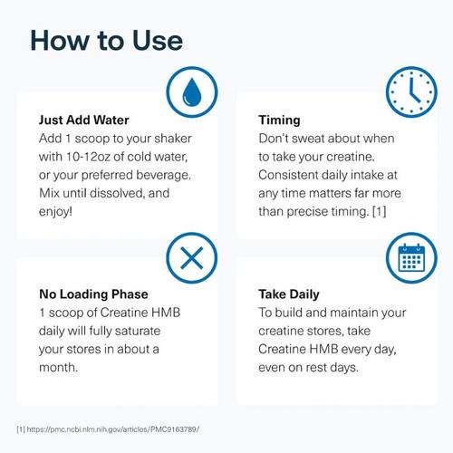 Creatine HMB is rounded out with BioPerine®, an absorption enhancer, and vitamin D3 for comprehensive muscle recovery and support of lean tissue mass.
