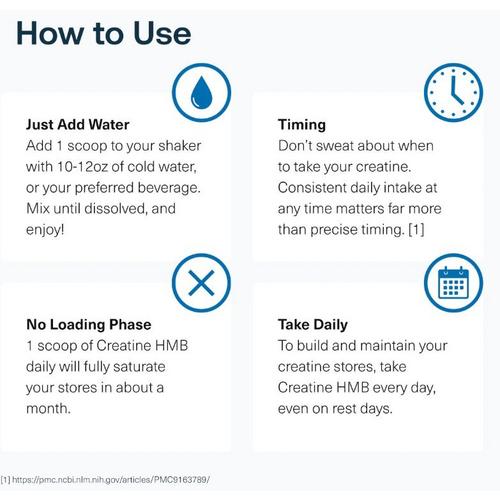Creatine HMB is rounded out with BioPerine®, an absorption enhancer, and vitamin D3 for comprehensive muscle recovery and support of lean tissue mass.